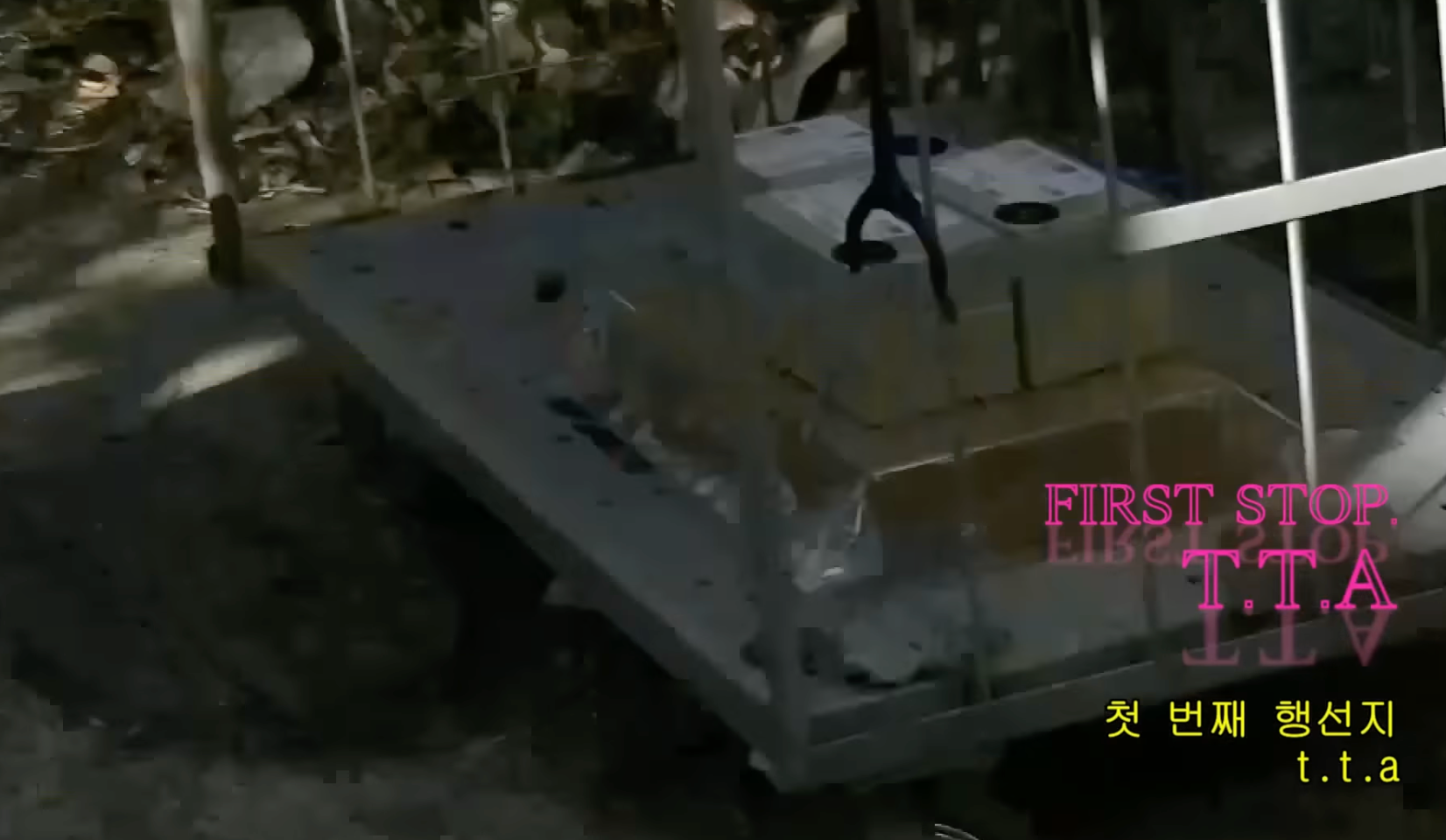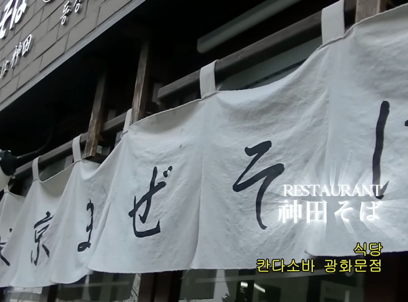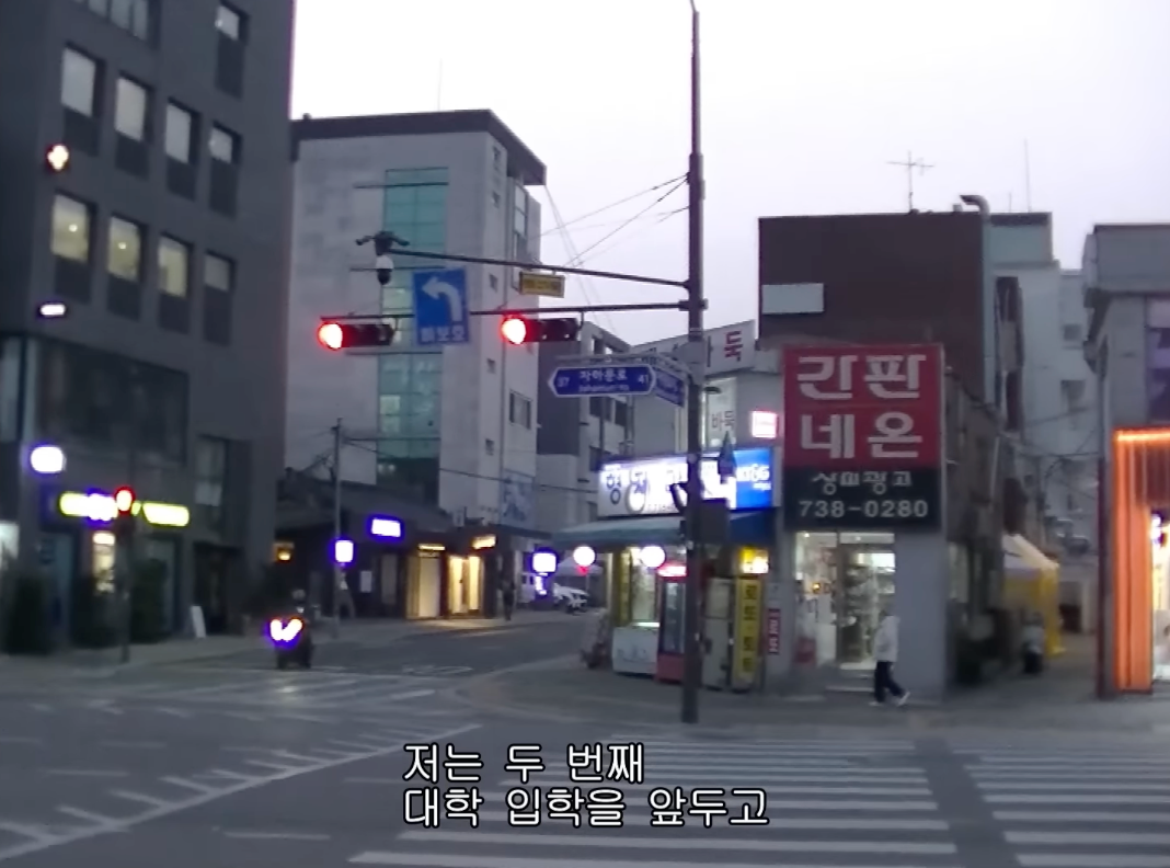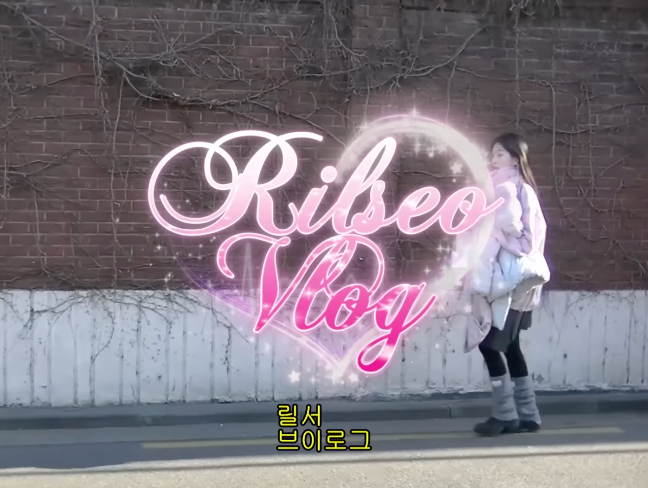 일본 드라마 느낌을 살리기 위해 브이로그 내에서 행선지나 위치 정보를 표시해야 할 때 자막 디자인에 더 신경을 썼습니다. 장소 이름을 외국어로 화려하게 기재한 후 실제 드라마에서 간판 등이 번역되는 것처럼 밑에 노란 굴림체 자막을 추가했어요.