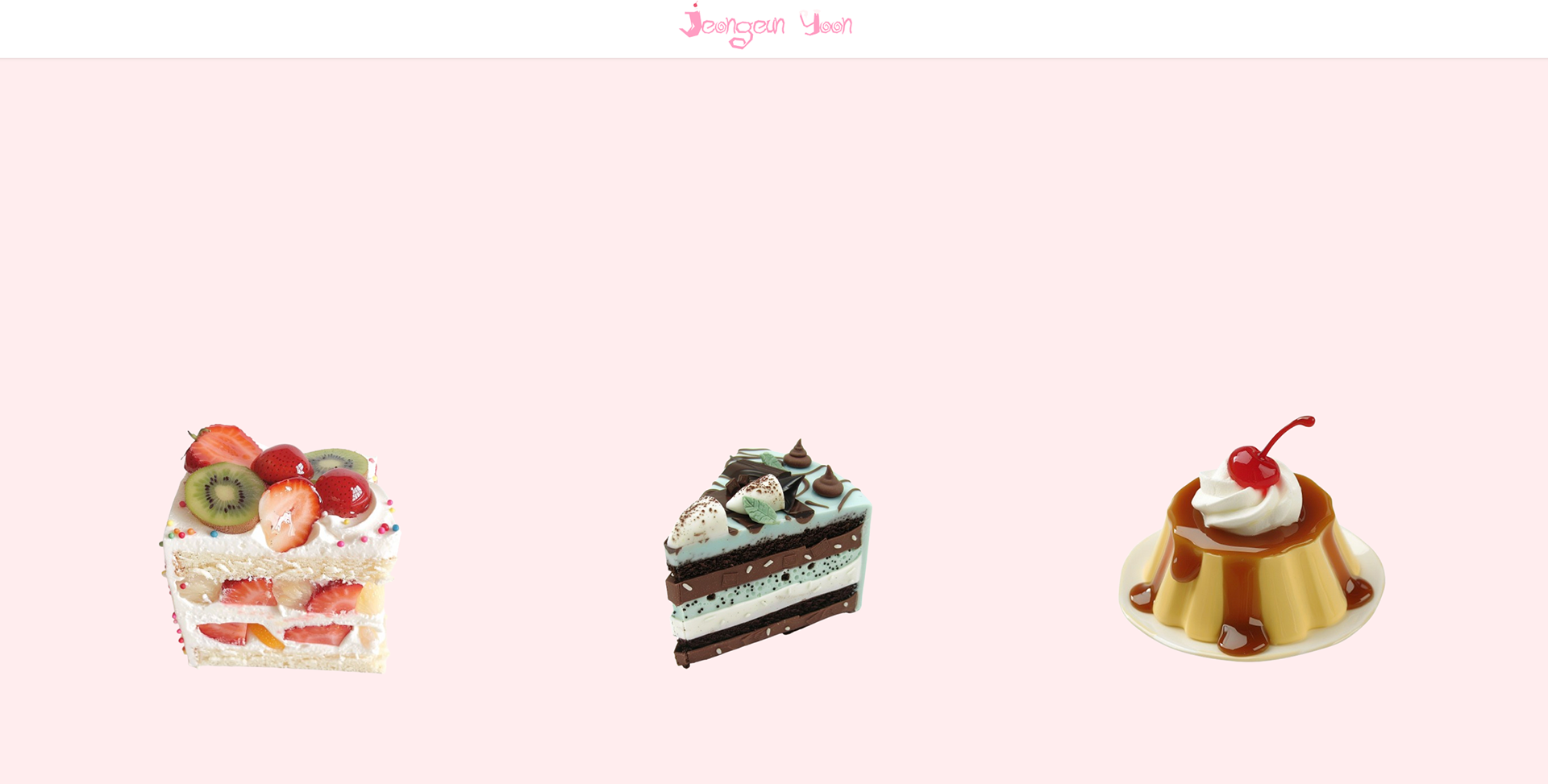 디저트들을 클릭하면 각각 '영상 작업 / 유튜브 작업 / 소개'로 이어지게끔 하이퍼링크를 걸었습니다.